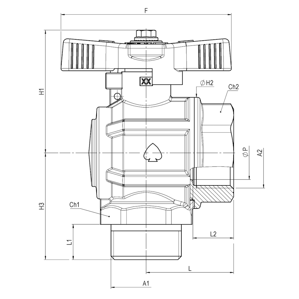 | F | L | L1 | L2 | A1 | A2 | H1 | ØH2 | ØP | Ch1 | Ch2 | ||||