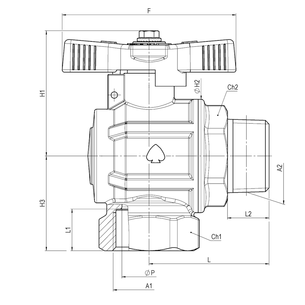 | A1 | A2 | F | Ch1 | Ch2 | H1 | ØH2 | H3 | L | L1 | L2 | ØP | |||