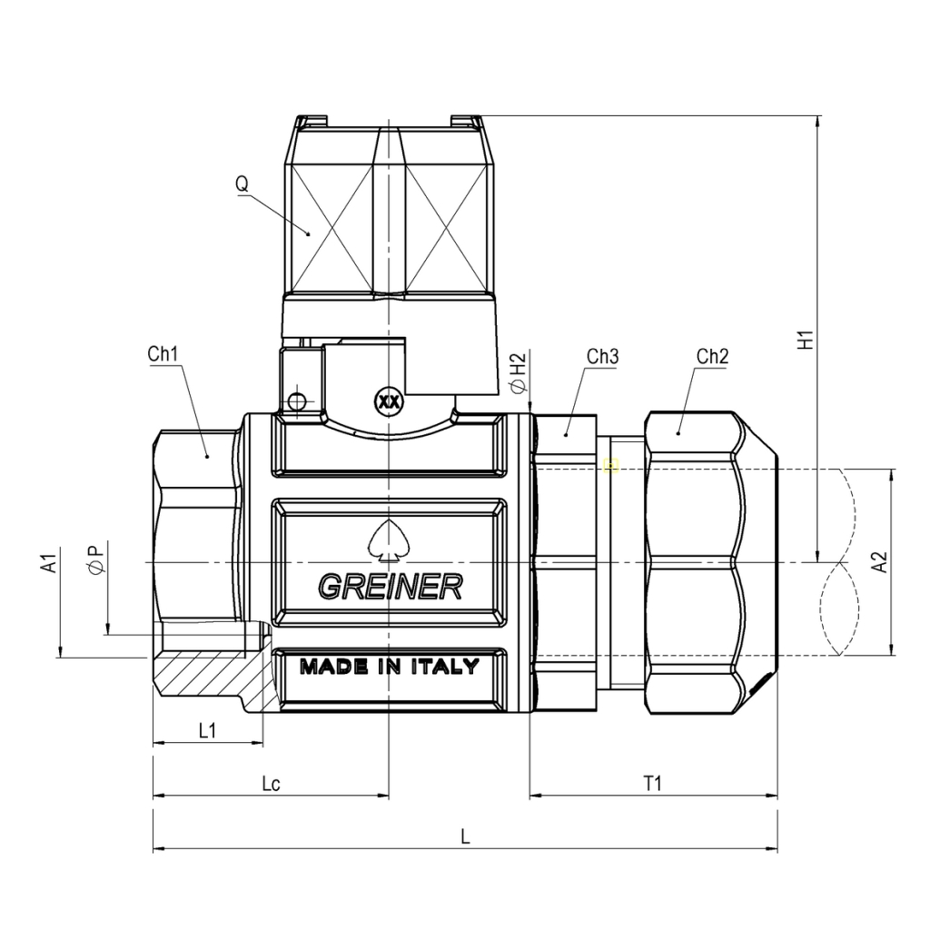 | L | L1 | A1 | A2 | H1 | ØH2 | ØP | Lc | Ch1 | Ch2 | Ch3 | T1 | Q | |||||