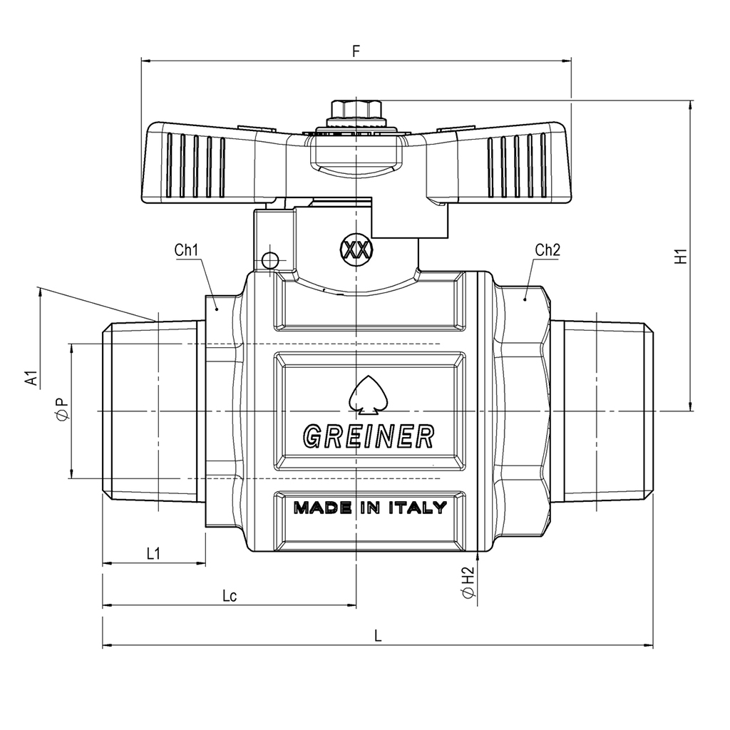 | F | L | L1 | A1 | H1 | ØH2 | ØP | Lc | Ch1 | Ch2 | ||||