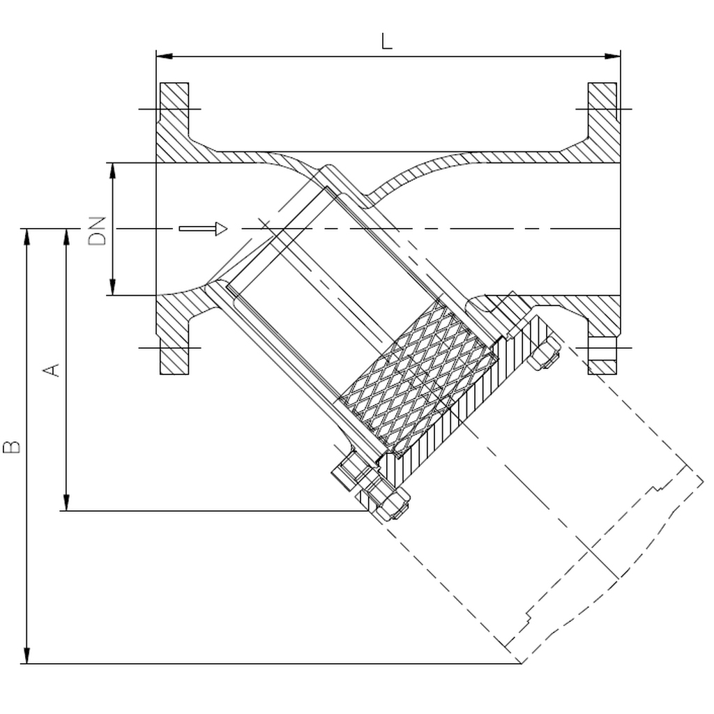 | DN | Méretek (mm) | Normál szűrő Kv (m³/h) | Finom szűrő Kv (m³/h) | Normál szűrő ζ (-) | Finom szűrő ζ (-) | Súly (kg) | ||