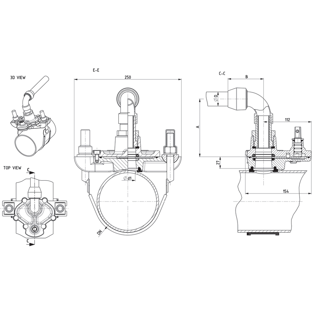 | DN | Átfogás (mm) | GÖV cső átmérő | Acélcső átmérő | ||