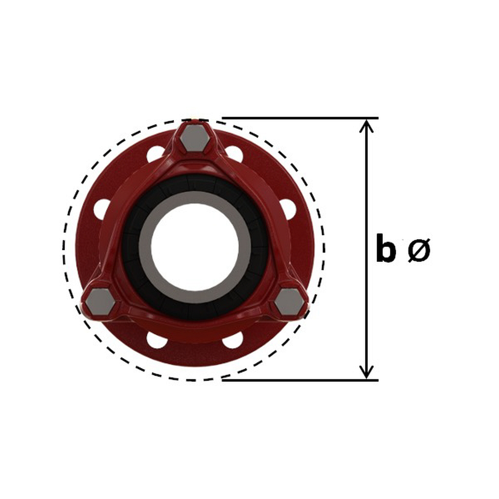 | átfogás (mm) | DN | Furatkiosztás | a | b | ID min.** | e | víz | gáz | |||