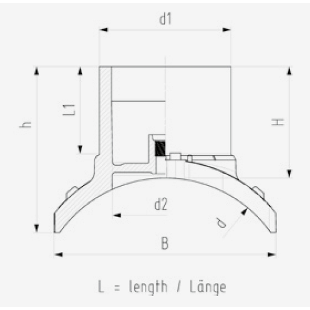 | d (mm) | d1 (mm) | Cikkszám | Súly (kg) | Méretek (mm) | |||||