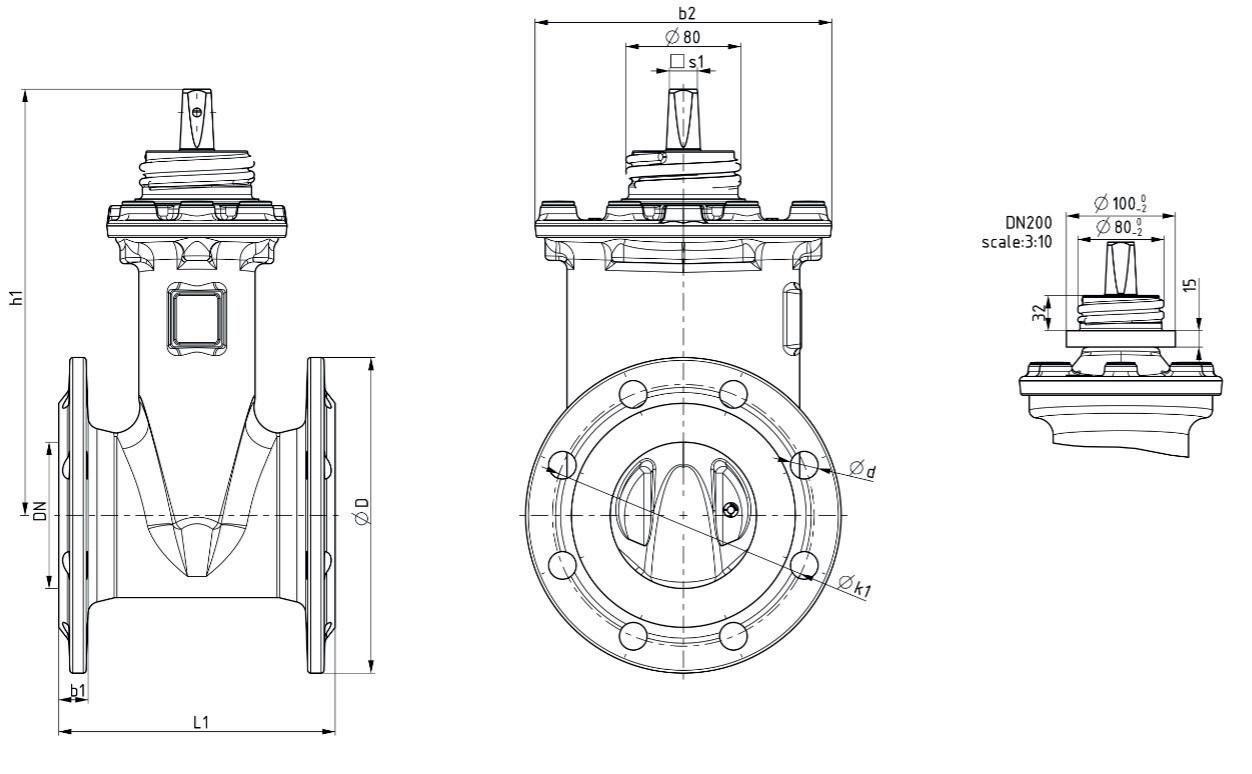 | k1 PN10 [mm] | 125 | 145 | 160 | 180 | 210 | 240 | 295 | 350 | 400 | 460 | 515 | 620 | 725 | |