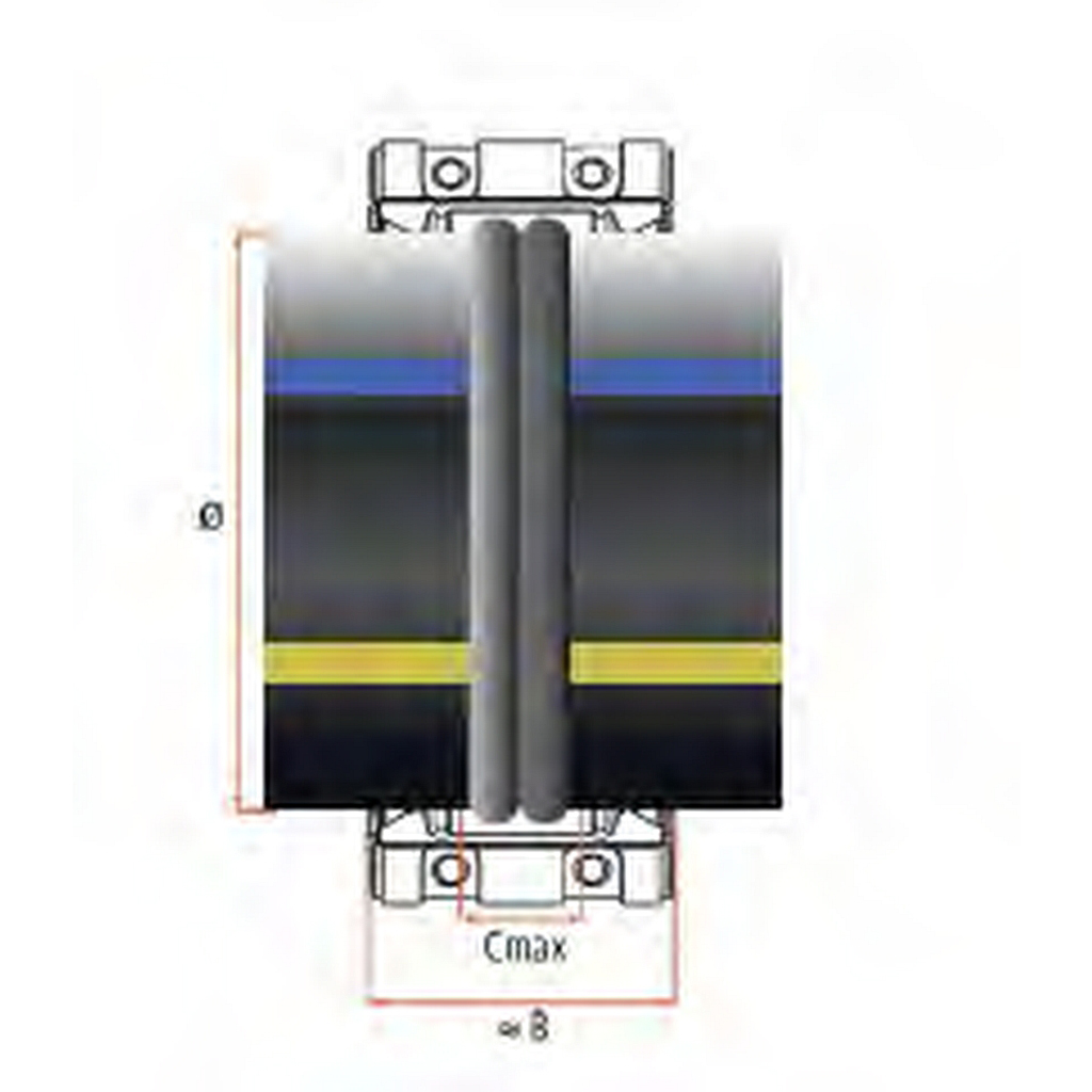 | Cső névleges külső átmérő (mm) | M | PN (bar) | Megengedett üzemi nyomás vízre (bar) | Méretek (mm) | Nyomaték (Nm) | Súly (kg) | ||||||