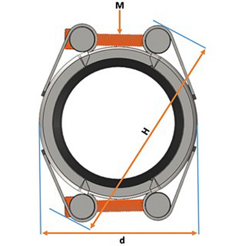 | Cső külső átmérő (mm) | M | Megengedett üzemi nyomás vízre (bar) | Méretek (mm) | Nyomaték (Nm) | Súly (kg) | ||||||