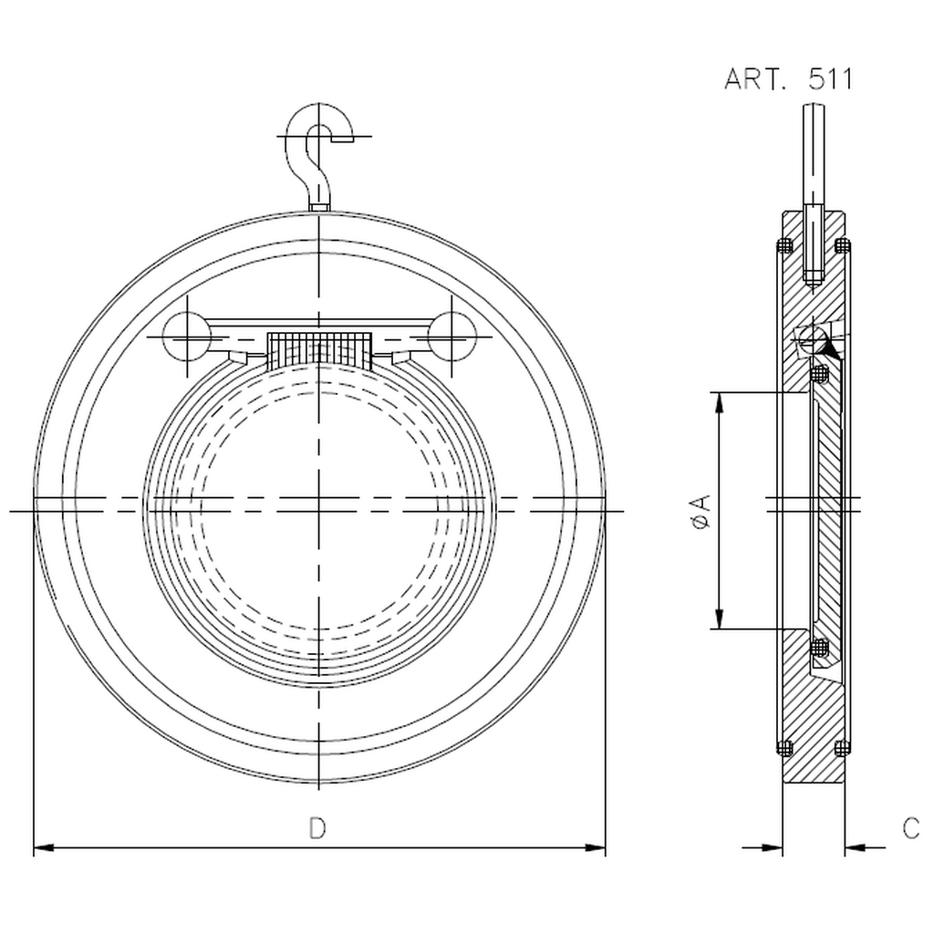 | DN | A | D | C | Kv-érték (m3/h) | ζ (-) | Súly (kg) | ||||